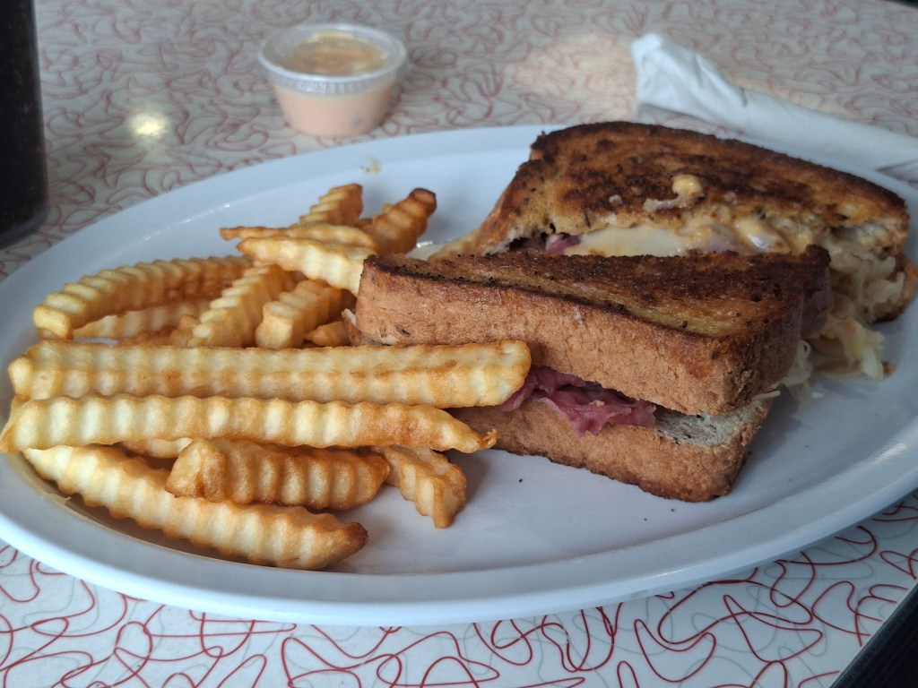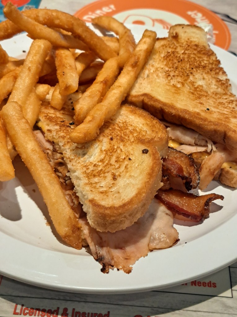 Turkey Melt: The melt was good, but since we are cheese lovers, we think it could have had a bit more cheese in it. It came with hash browns on the side because the diner was out of fries. The hash browns were a bit too soft for our taste—almost like mashed potatoes in the middle—but they were buttery and tasted good.
