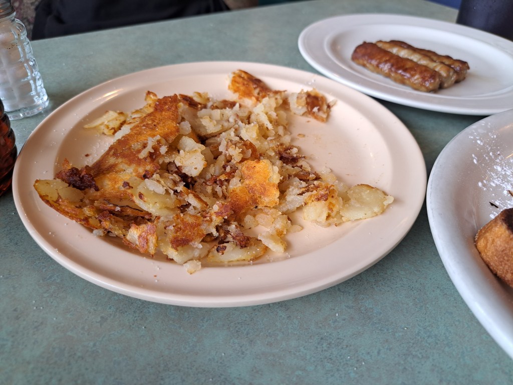 Home fries: Kinda smashed and didn’t look like home fries at all. They tasted alright, but it wasn’t what we wanted.