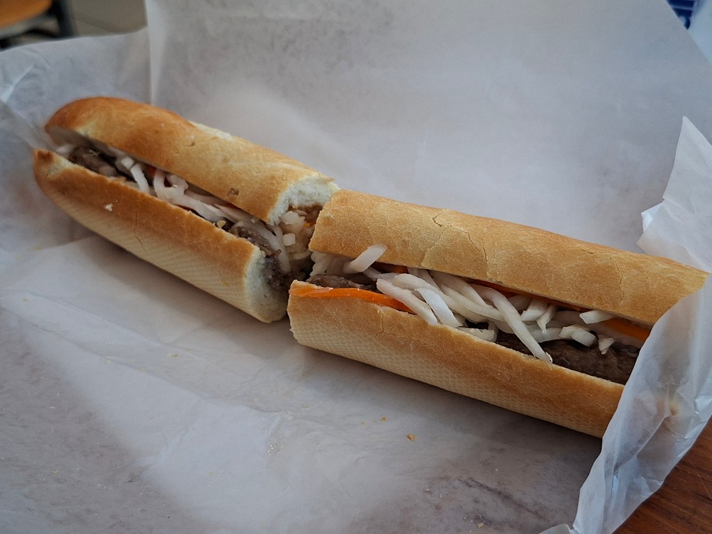Pork and beef banh mi: It was good. The meat had a nice flavor, and the vegetables were fresh. It had less cilantro than we would’ve liked, though.