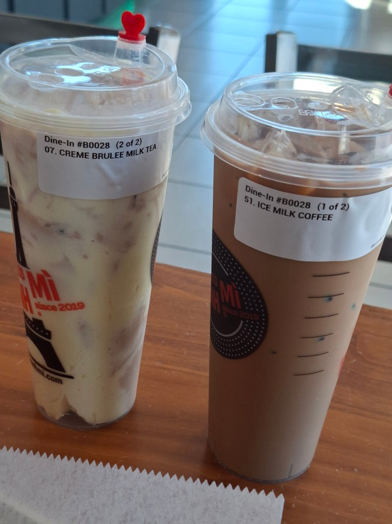 Vietnamese coffee: We don’t know what it’s supposed to taste like, but it was good, with a very strong coffee flavor.